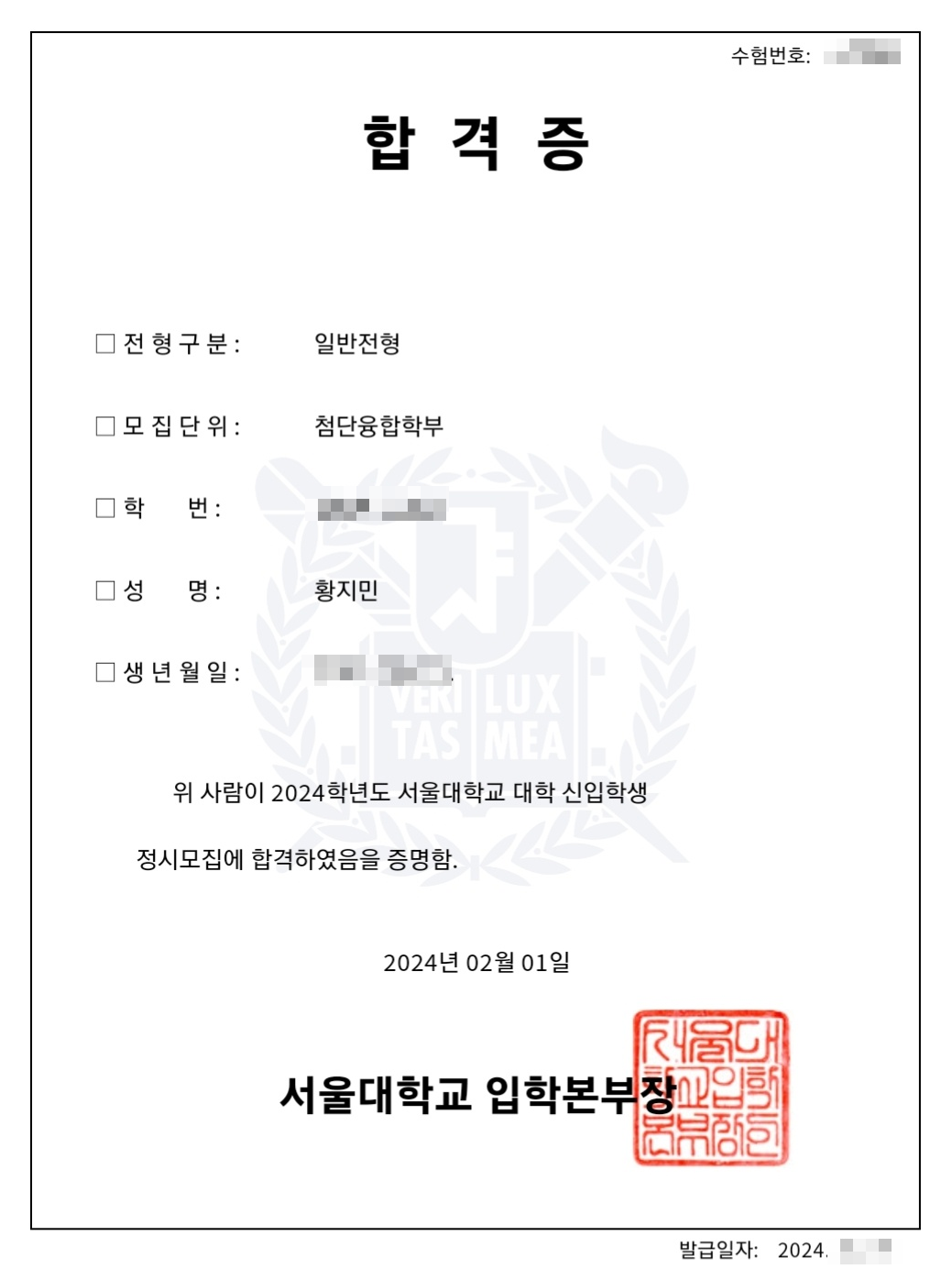 리딩엠에서 초등학교 1학년 때부터 학습해 올해 서울대학교 첨단융합학부에 합격한 황지민 군이 그 주인공이다.