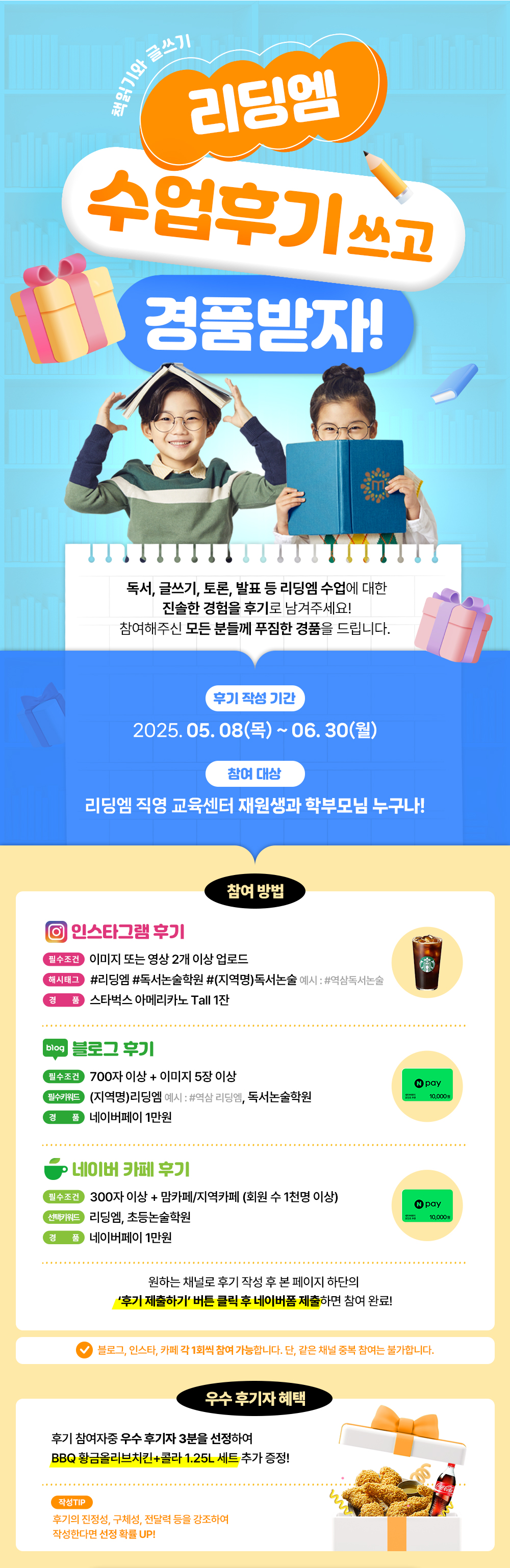 후기 쓰면 무조건 당첨! 리딩엠 수업후기 이벤트 진행