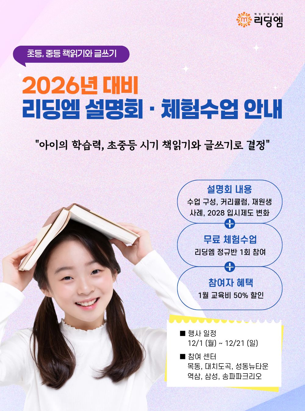 25년 겨울 <책읽기와 글쓰기 리딩엠> 설명회·체험수업 안내